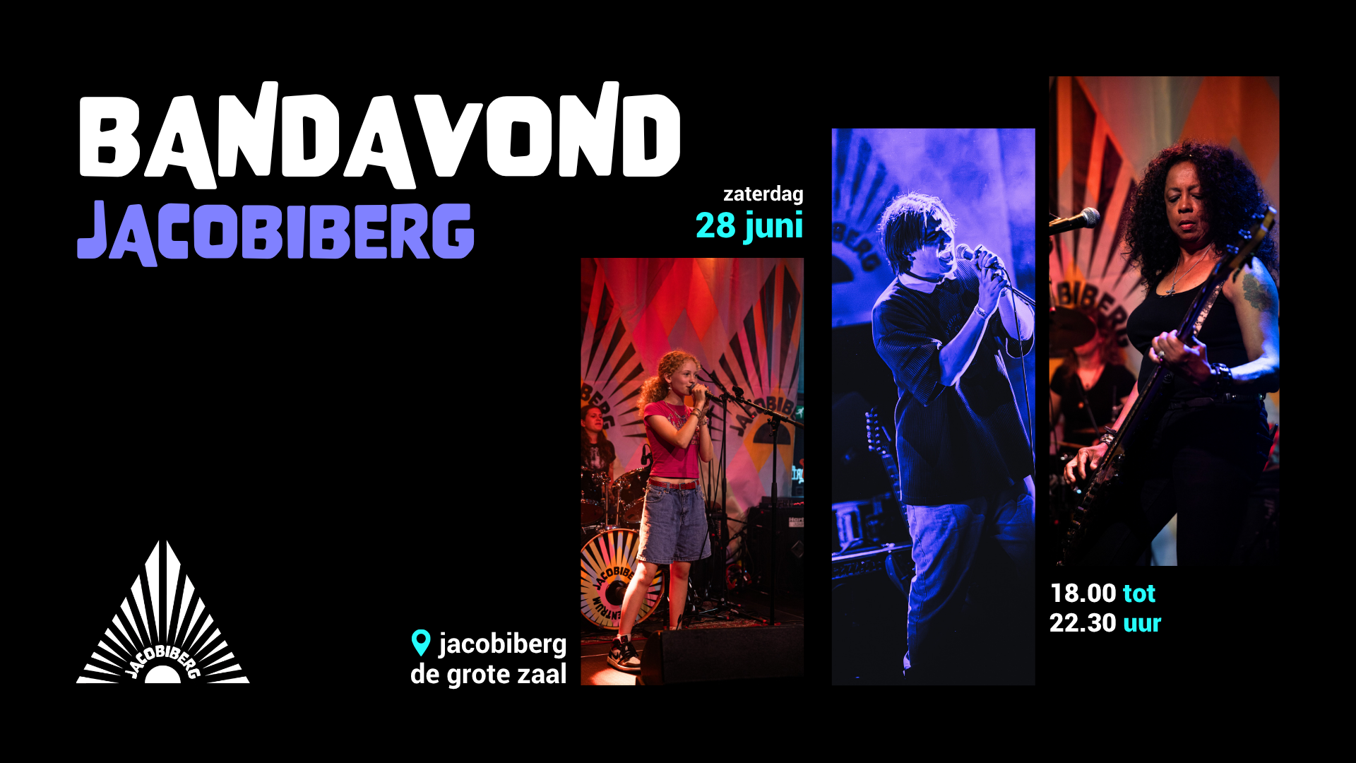 Op zaterdag 28 juni aanschouw je de sterren van morgen in De Grote Zaal van Jacobiberg! Onze bandles-bands klimmen het podium op en laten zien waar ze al die uren in de oefenruimte voor hebben gezwoegd. Trotse vaders, zorgzame oma’s, verre neef, goeie buur en zelfs de gekke tante die de dansvloer helemaal over gaat nemen; iedereen is welkom. Samen juichen we de helden op het podium keihard toe en maken we er weer voor iedereen een onvergetelijke avond van!