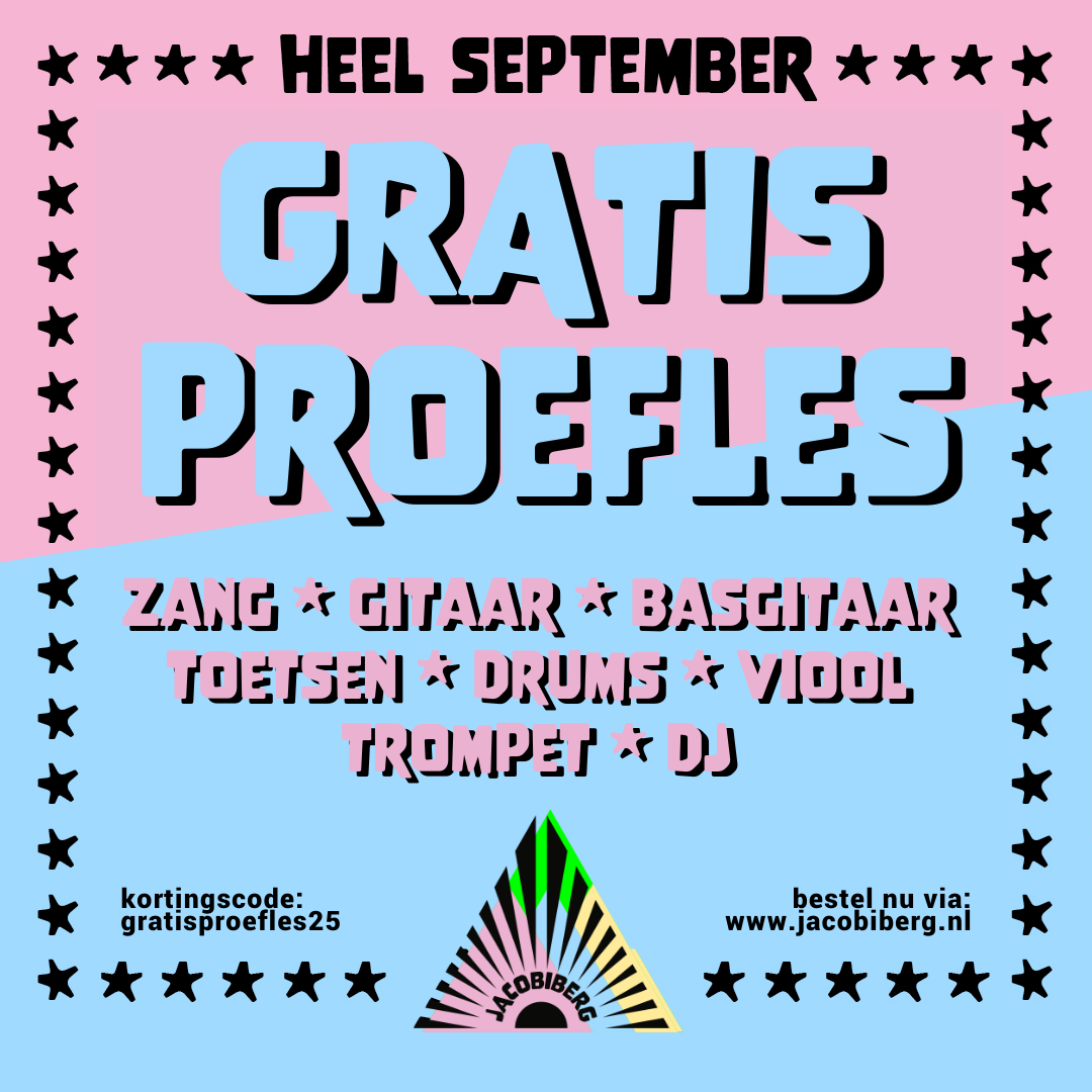 De hele maand september 2025 kun je een gratis proefles (t.w.v. €15) volgen, voor zang, dj of een instrument naar keuze bij Jacobiberg in Arnhem. Altijd al gedroomd van drummen, gitaar spelen, zingen of achter de draaitafels staan? Dan is dit je kans om het uit te proberen!