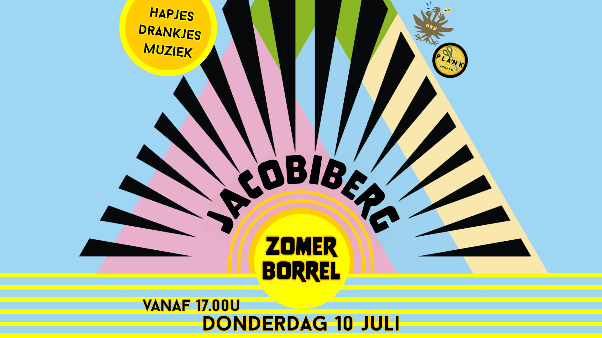 Vier de zomer met ons allemaal! Jacobiberg, PLANK en de Alles Arnhem Meeting organiseren op donderdag 10 juli een gezellige Zomerborrel met een hapje, drankje en muziek. En jij bent welkom!